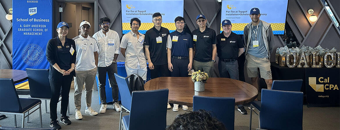 Five UCR School of Business students received scholarships from CalCPA, the largest state CPA society in the nation, on May 17 at the society’s Installation & Scholarship ceremony. The day’s events also included a spirited game tournament at Topgolf in Ontario, California, where the UCR Business team proudly won the CalCPA Inland Empire Chapter Battle of the Firms trophy. The combination of academic recognition and a fun, team-based competition made the day especially memorable for students, faculty, and staff who represented the university.
