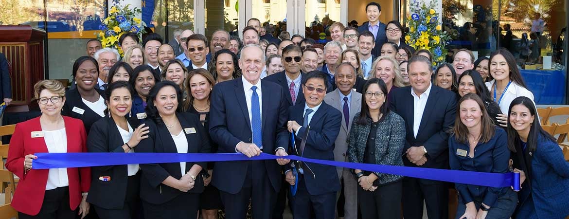 UC Riverside celebrated the start of a new chapter for the School of Business with the dedication of its new four-story instructional and administrative building at a ribbon-cutting ceremony Friday, Oct. 18.