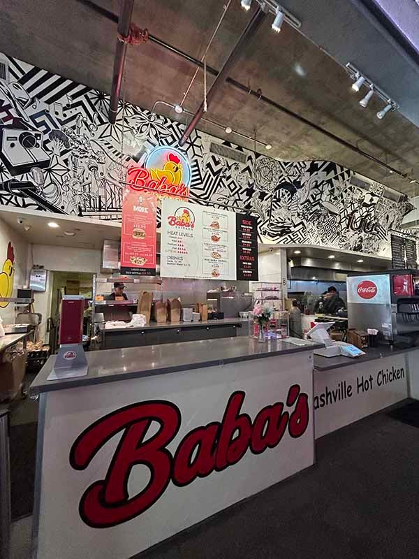 Today, Baba’s brick-and-mortar is in the Riverside Food Lab—a food hall with many restaurants—on Market Street in the heart of the city’s cultural and dining district. The bright, casual diner is busy with customers who crave the spicy Nashville-style hot chicken sandwiches and choose varying heat levels: from no hot seasoning at all to an extreme fire punch: “intent to burn the victim’s mouth,” according to Baba’s menu.