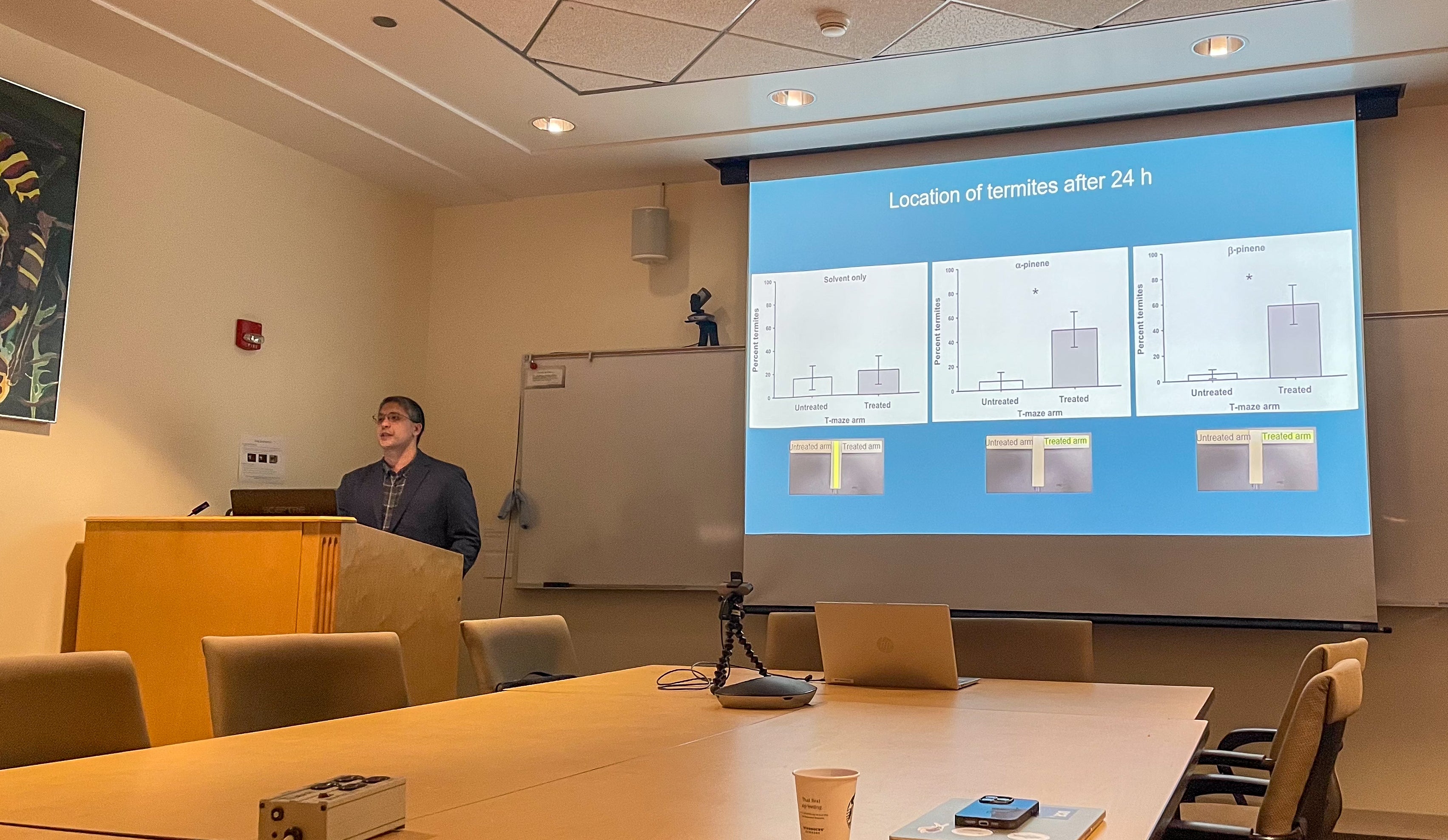 Nicholas Poulos has successfully completed his PhD dissertation defense today (April 29, 2025). His dissertation title is "Attractants, Chitin Synthesis Inhibitors, and Bacterial Diversity of Fecal Pellets: Improving Localized Chemical Treatment and Detection of the Western Drywood Termite (Blattodea: Kalotermitidae)".