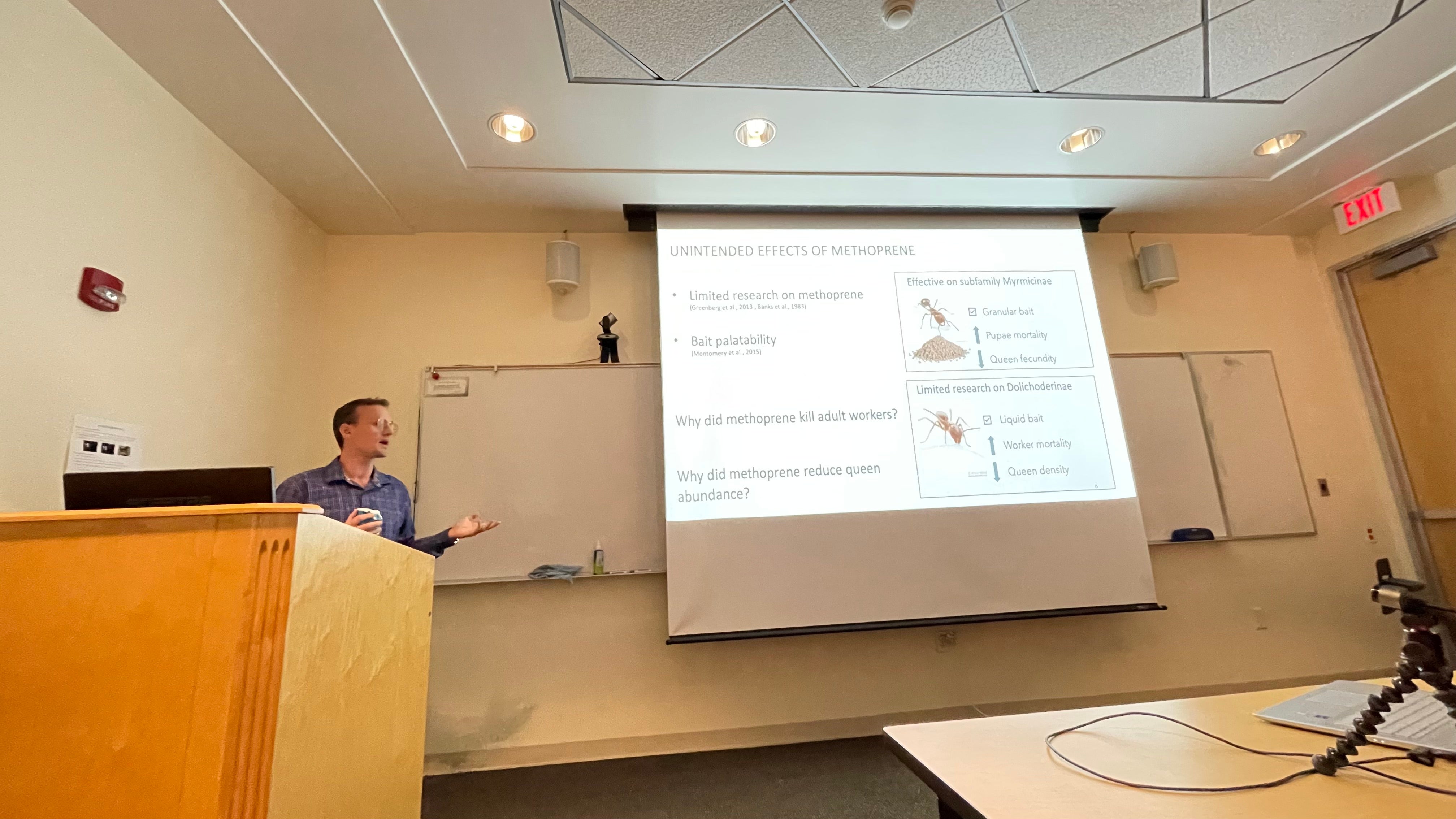 Tobias Moyneur has successfully completed his PhD dissertation defense today (September 5, 2025). His dissertation title is "Effects of Juvenile Hormone Analog on Lipid and Hydrocarbon Physiology Across Castes in the Argentine ant, Linepithema humile (Mayr)".