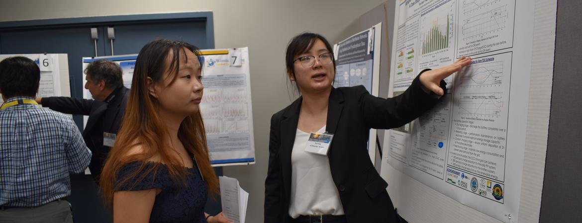 One of the highlights at the 2nd Annual Winston Chung Global Energy Center's Energy Storage Technologies and Applications Conference held at Bourns Technology Center on April 11-12, 2019 was the poster exhibition and competition. The poster sessions included the exhibition of posters from sixteen projects that was carried out by the teams from UC Riverside, UC Los Angeles, California State University at Long Beach, UC Berkeley, and Andromeda Power, LLC.