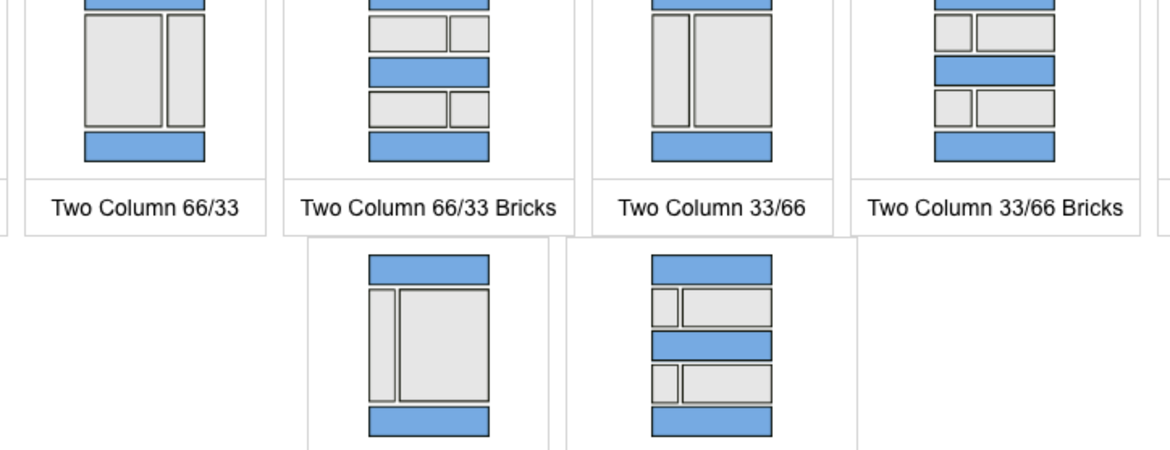 The layouts for the basic page content type have expanded, in that your content can expand to "full width" of the page, rather than being contained within the set grid. What does that mean? Now, any full, non-columned, region by default will span the entire screen size. For certain blocks that are placed, this can be changed and do not have to break out of the confines of the grid, except for its background. There will be an option to "center" content in a view mode using the gears icon for that block. Take a look at the layouts; regions in blue can expand full width, regions in grey (columned regions) will continue to be fixed to the grid size.