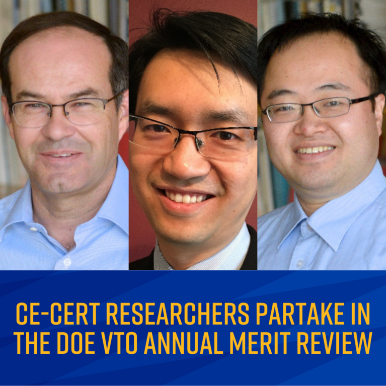 CE-CERT researchers, Tom Durbin, Kanok Boriboonsomsin, and Guoyuan Wu, participated in the DOE VTO's Annual Merit Review. Held virtually, this event evaluated ongoing transportation research projects for alignment with DOE goals.