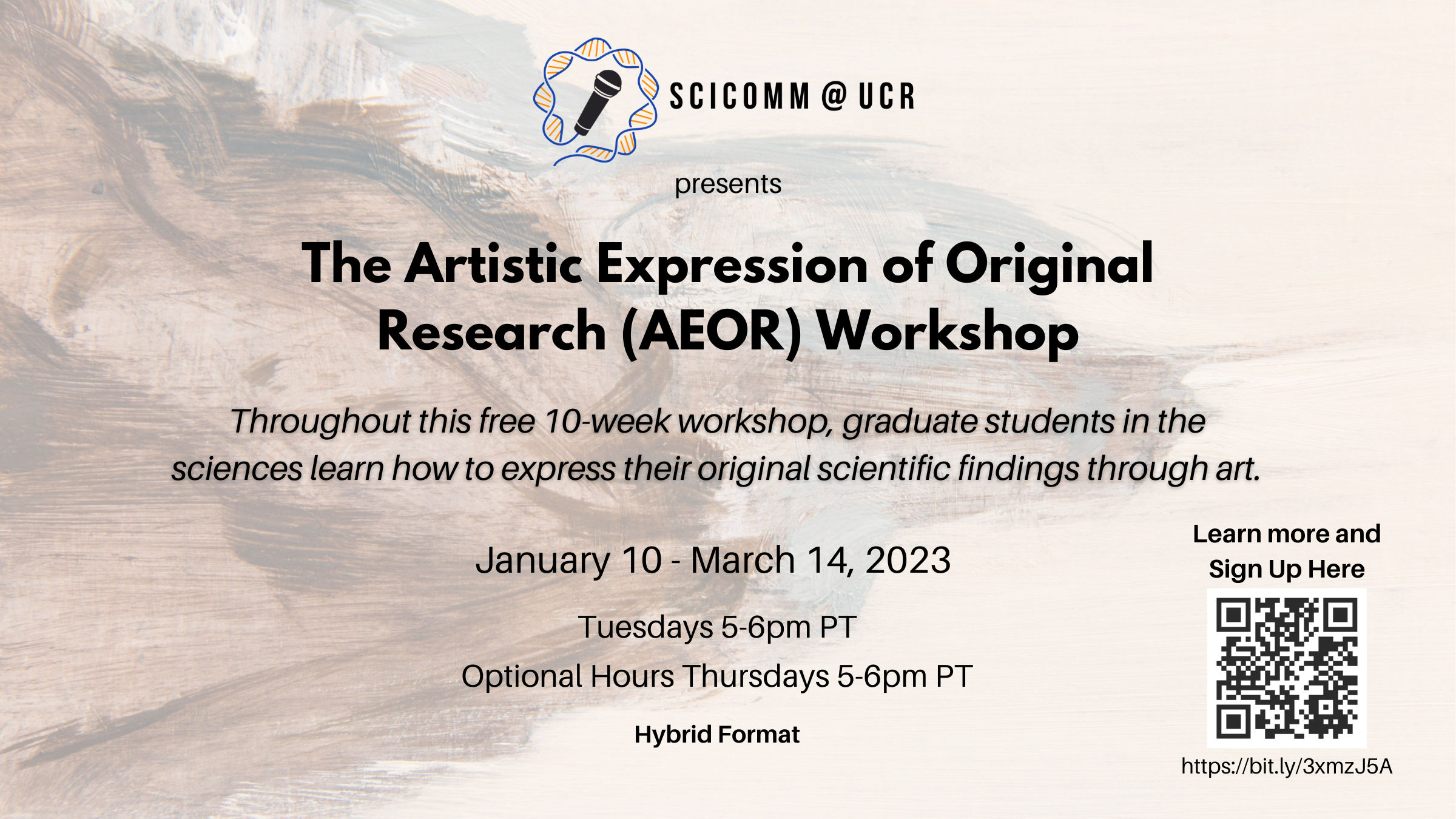 SciComm@UCR is excited to announce a free, 10-week workshop: "Artistic Expression of Original Research" (AEOR).