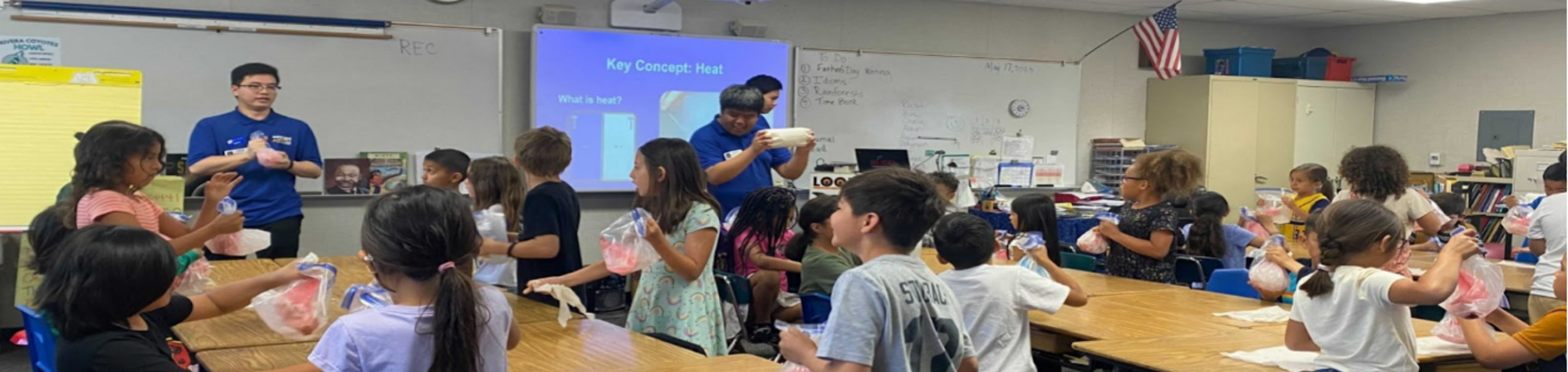 K-6 teachers can choose an experiment/demonstration from our lessons (see current list below) and schedule a time for our college students to teach a 1-hour in-class lesson with 4 components: warm-up, mini-lesson, experiment/demonstration, and review.