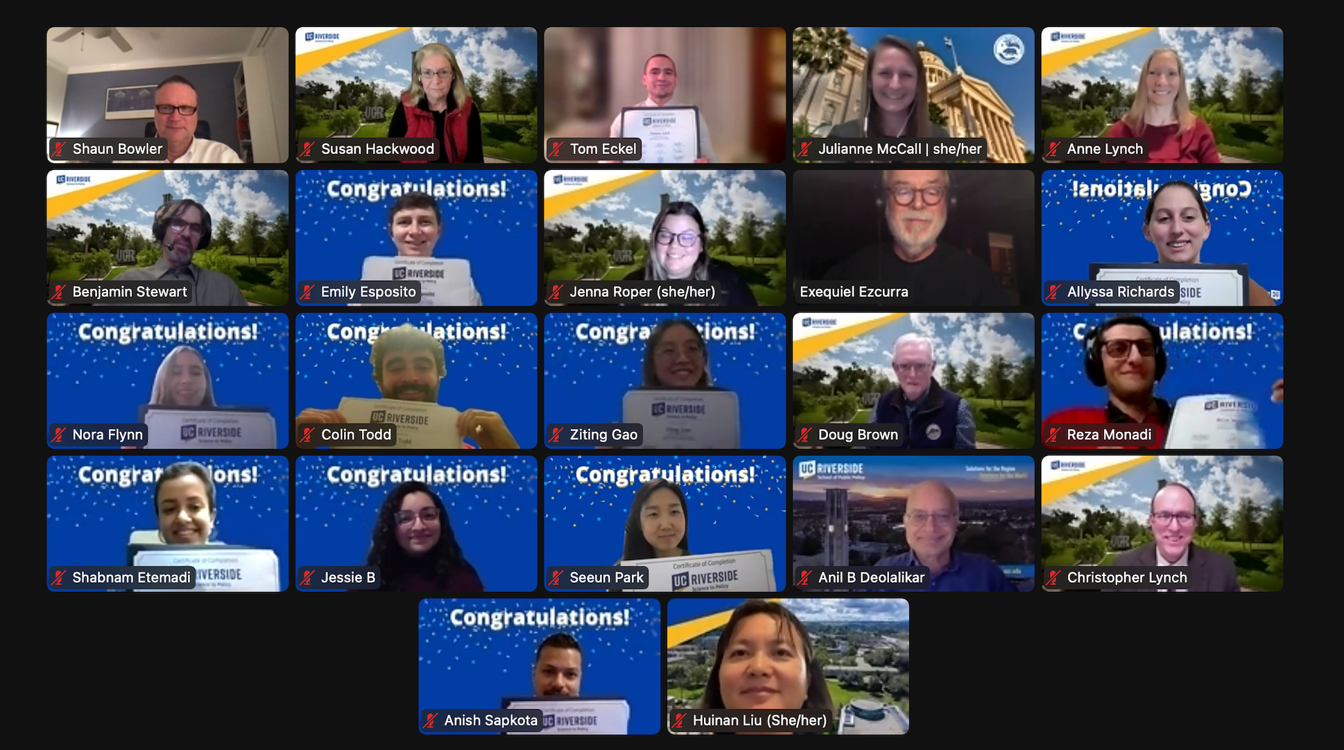 This evening, Science to Policy conferred certificates to the fifth cohort of the S2P Certificate Course! The founding Dean of the School of Public Policy, Anil Deolalikar, the Dean of the Graduate Division, Sean Bowler, and the Dean of Engineering, Chris Lynch, attended the ceremony to confer certificates. Congressman Mark Takano was the keynote speaker, highlighting the importance of scientists in policymaking. Certificates were conferred by Dean Bowler. Congratulations to the Fall 2022 Certificate Course students!