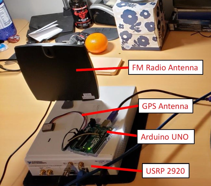 - Recorded and captured 99.9 MHz FM signal and calculate its location by correlating time difference of arrival and GPS data