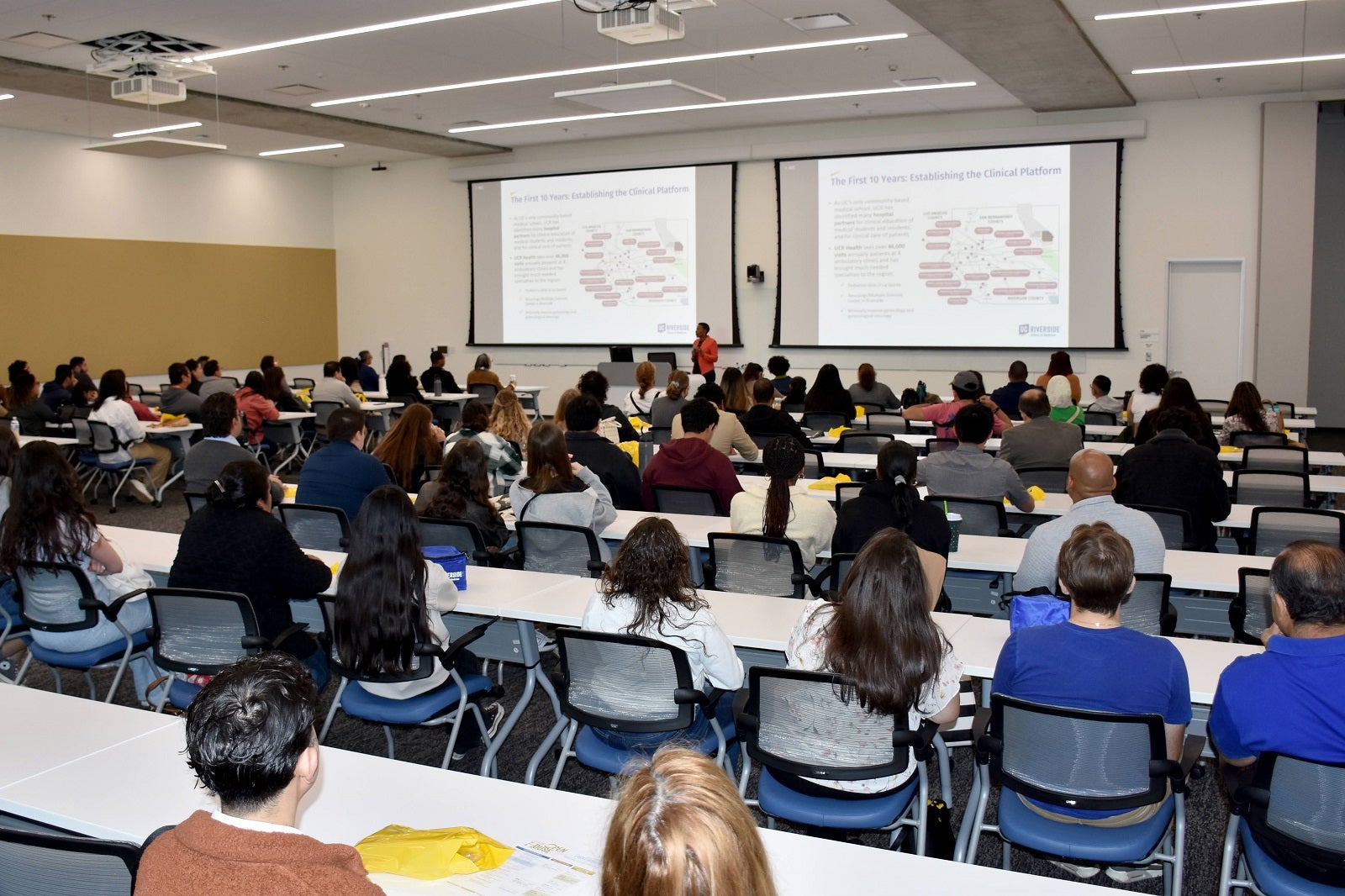 Open House 2024, which took place from 10 am until 2 pm, offered the opportunity to attend student panels and faculty presentations, tour the Center for Simulated Patient Care, and explore the new SOM Education Building II. Attendees could also speak to representatives from UCR Health and learn more about the SOM’s new Master of Public Health (MPH) program, which will begin in fall 2024.