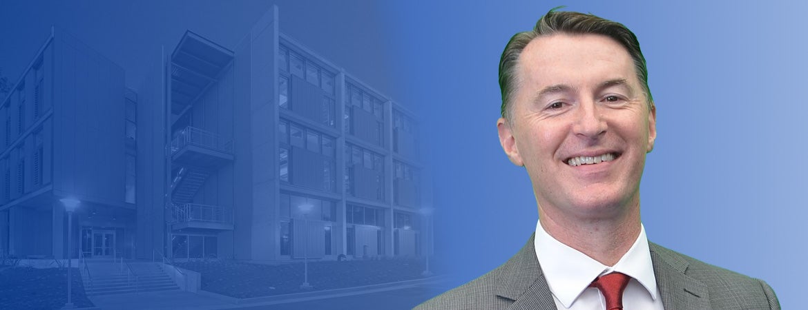 Declan McCole in front of a blue background