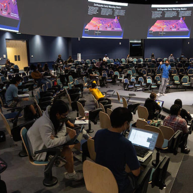 When Abhijit Ghosh teaches in the in-the-round lecture hall at UC Riverside’s Student Success Center, he doesn’t stand still. With a microphone on his lapel and an iPad in hand that he uses to control the audio-video system, Ghosh walks the aisles of the 404-seat hall during his “Earthquake Country” course, in which he teaches...