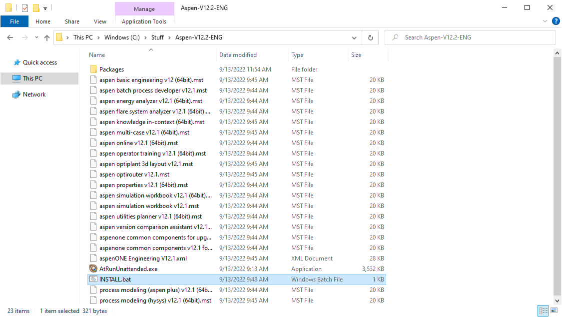 - Open the extracted Aspen folder and run the