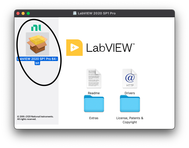 Open the mounted drive, then the LabVIEW folder, and then the macOS folder