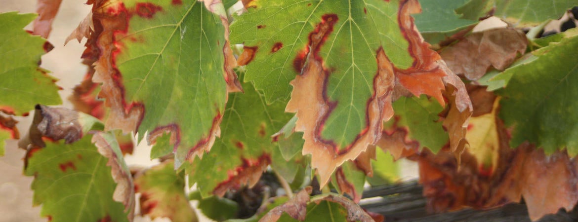 Although things are busy this time of the year with harvest, it is also a good time to keep an eye out for Pierce's disease. Symptoms are strongest this time of year. Try to scout the vineyard as time allows and flag suspected diseased vines for later removal.