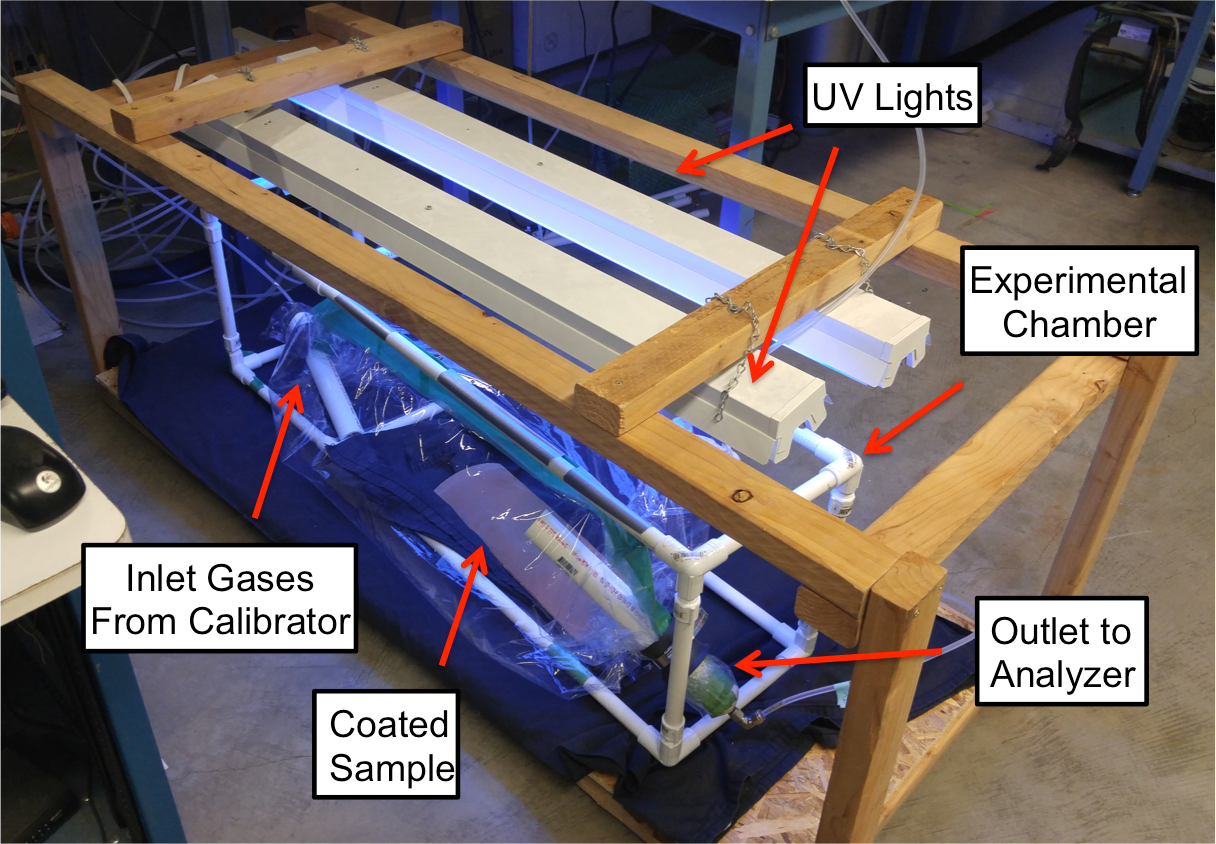 The Titania Coatings senior design team is working to design and perfect a product that will work to passively reduce ambient air pollutants, mainly NOx and VOCs. Our product is a spray coating that utilizes nanoscale Titanium Dioxide and can be applied in a thin layer to any rigid outdoor surface, primarily rooftops. The team's current goal is to create an airshed model of the rate of pollutant oxidation on the surface of treated roof tiles in order to determine the sustainability impact of our product on the environment.