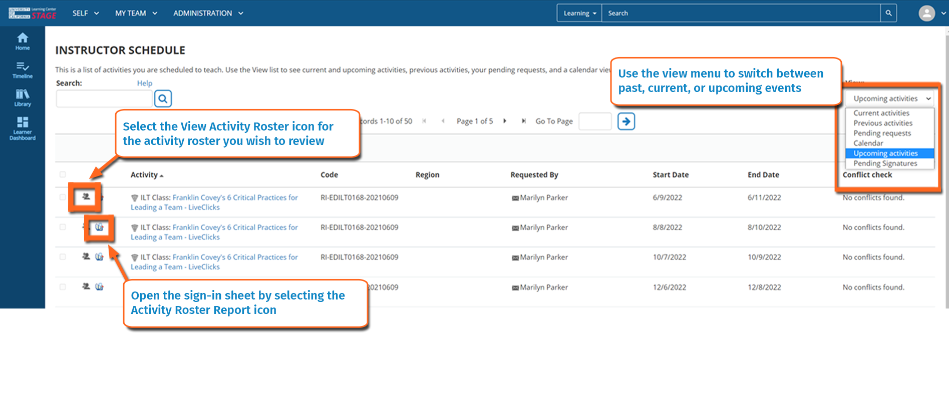 - Select the View Activity Roster icon for the activity roster you wish to review