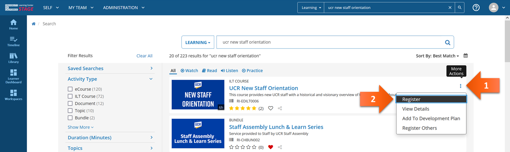 • Log into ucrlearning.ucr.edu and register as you would any in-person course offering.