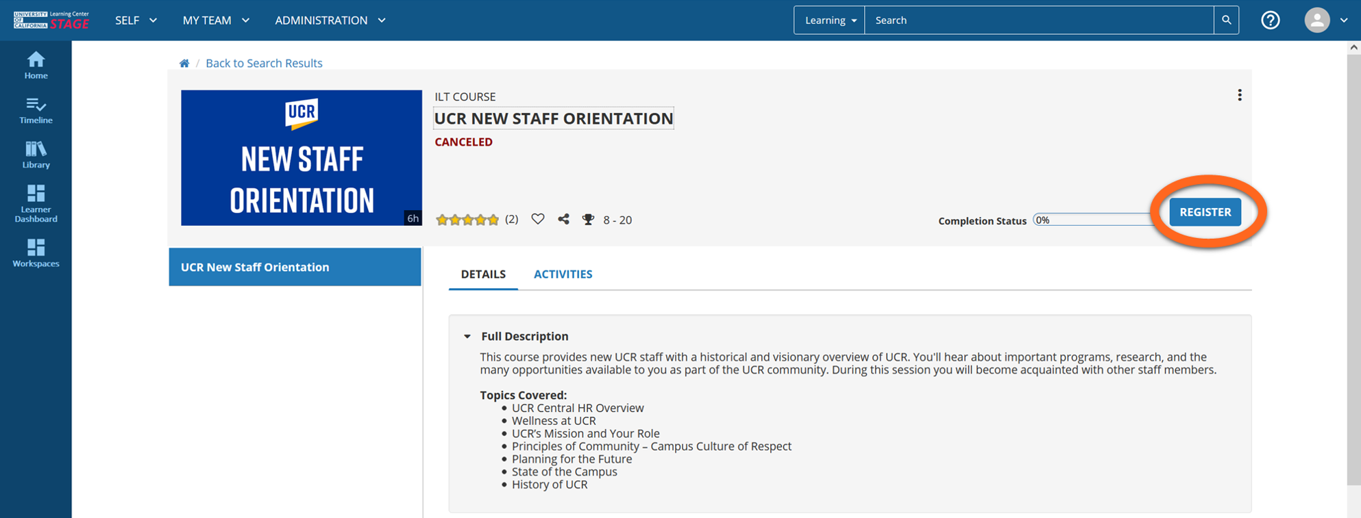 Whether you have searched for a specific learning activity or browsed the library, once you have decided on the activity you wish to enroll in these are the steps you can take to register.