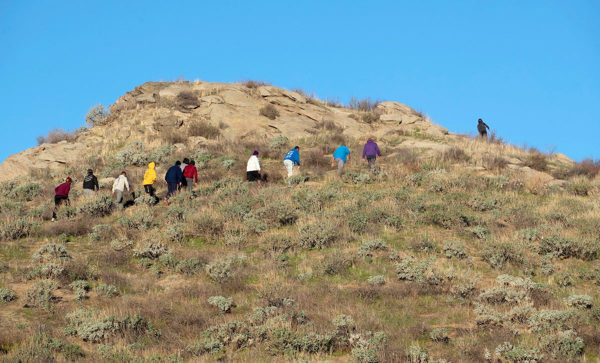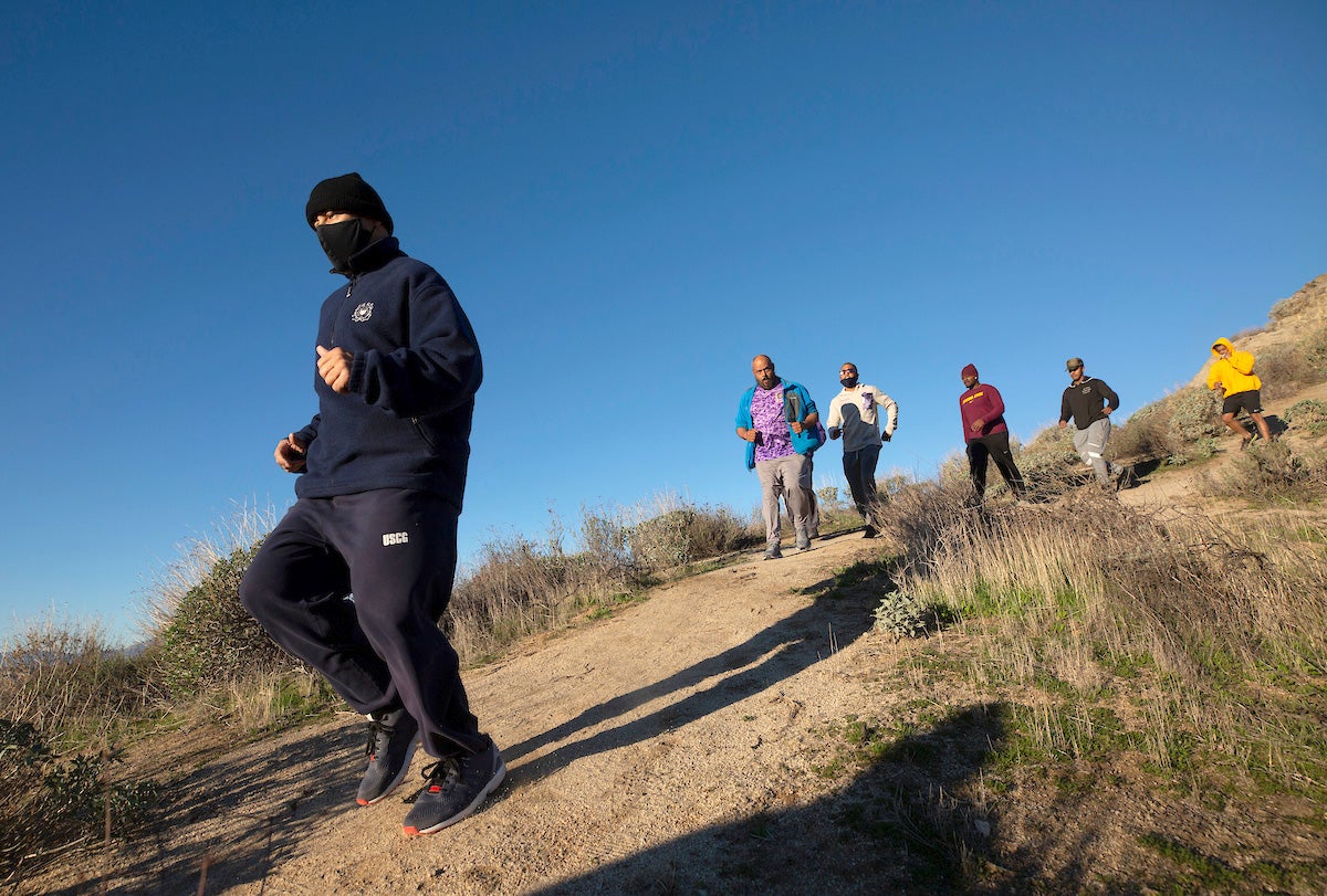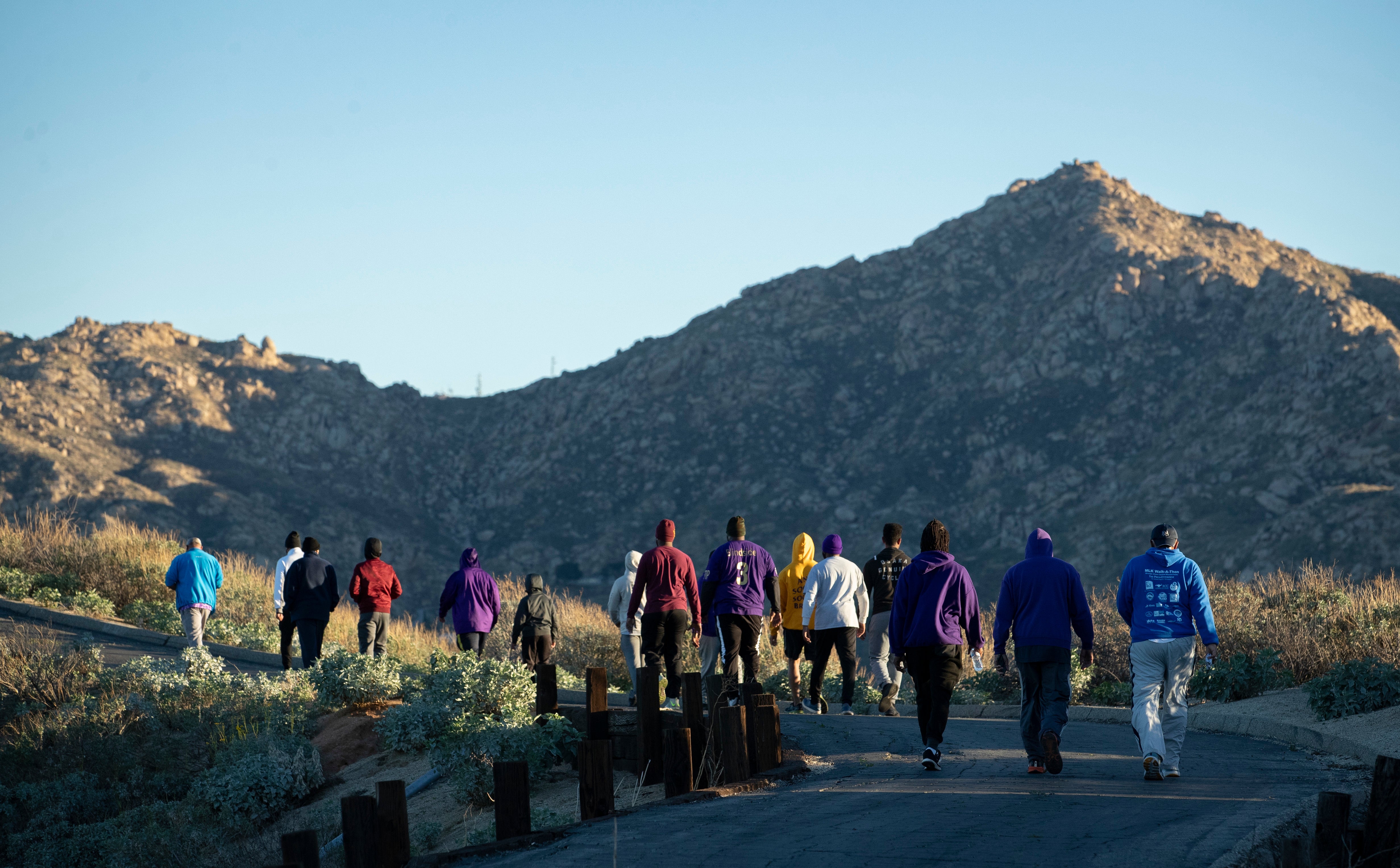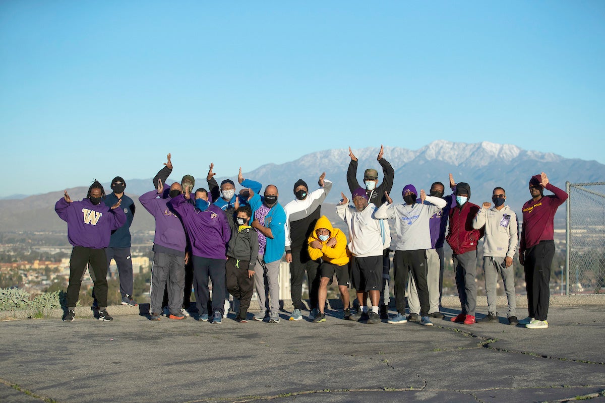 Participants laugh with one another and discuss politics, finances, and career plans, while offering mentorship to younger walkers. The men come from all over the Inland Empire — as far as Corona and Hemet — and wear face coverings while trying to keep a safe distance as they traverse the campus. Sometimes they run up and down the softball field’s bleachers, other times they challenge one another as they ascend and descend the yellow circular stairways of the College of Humanities, Arts, and Social Sciences. The morning walks allow the group to explore the campus and watch construction projects unfold week after week.