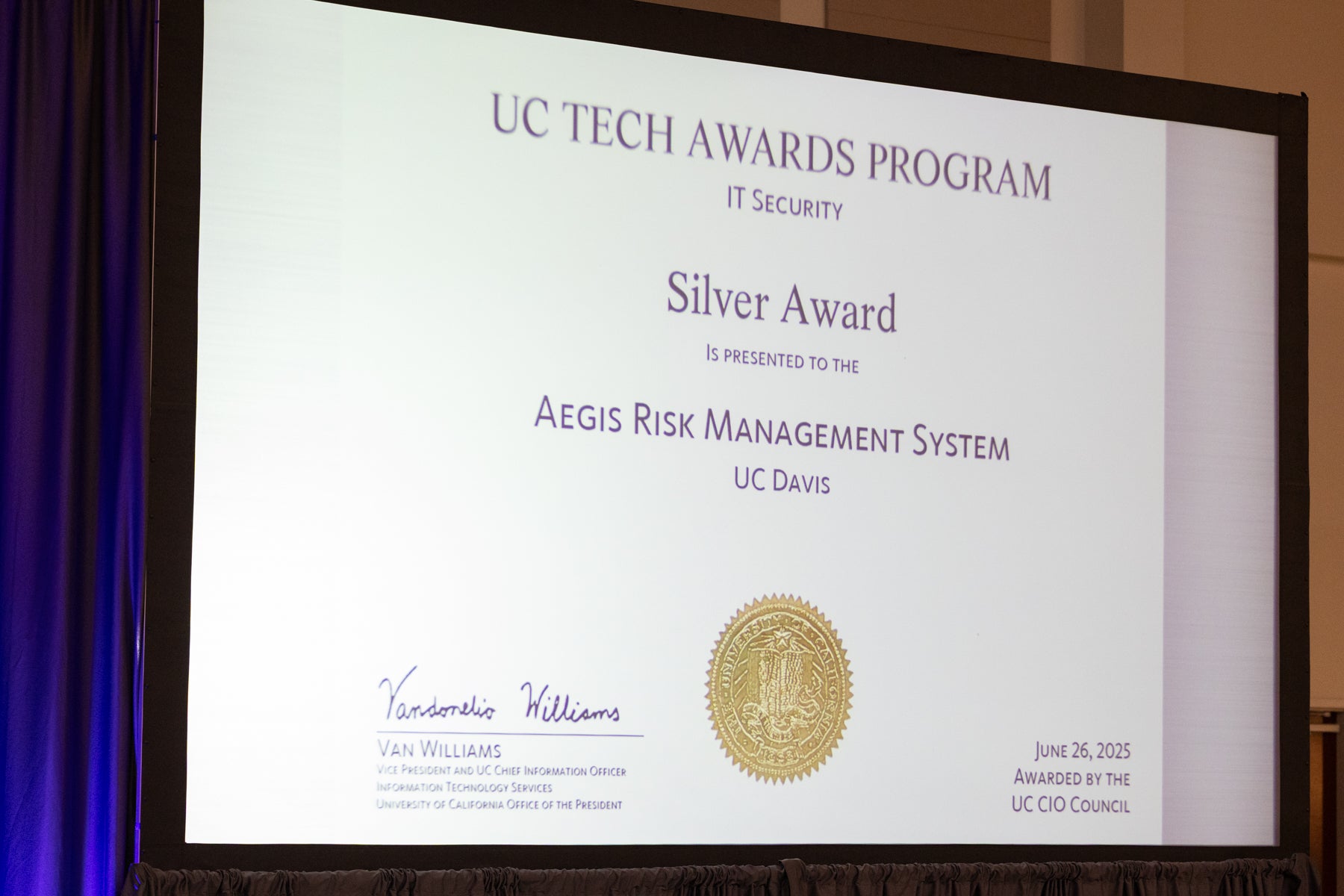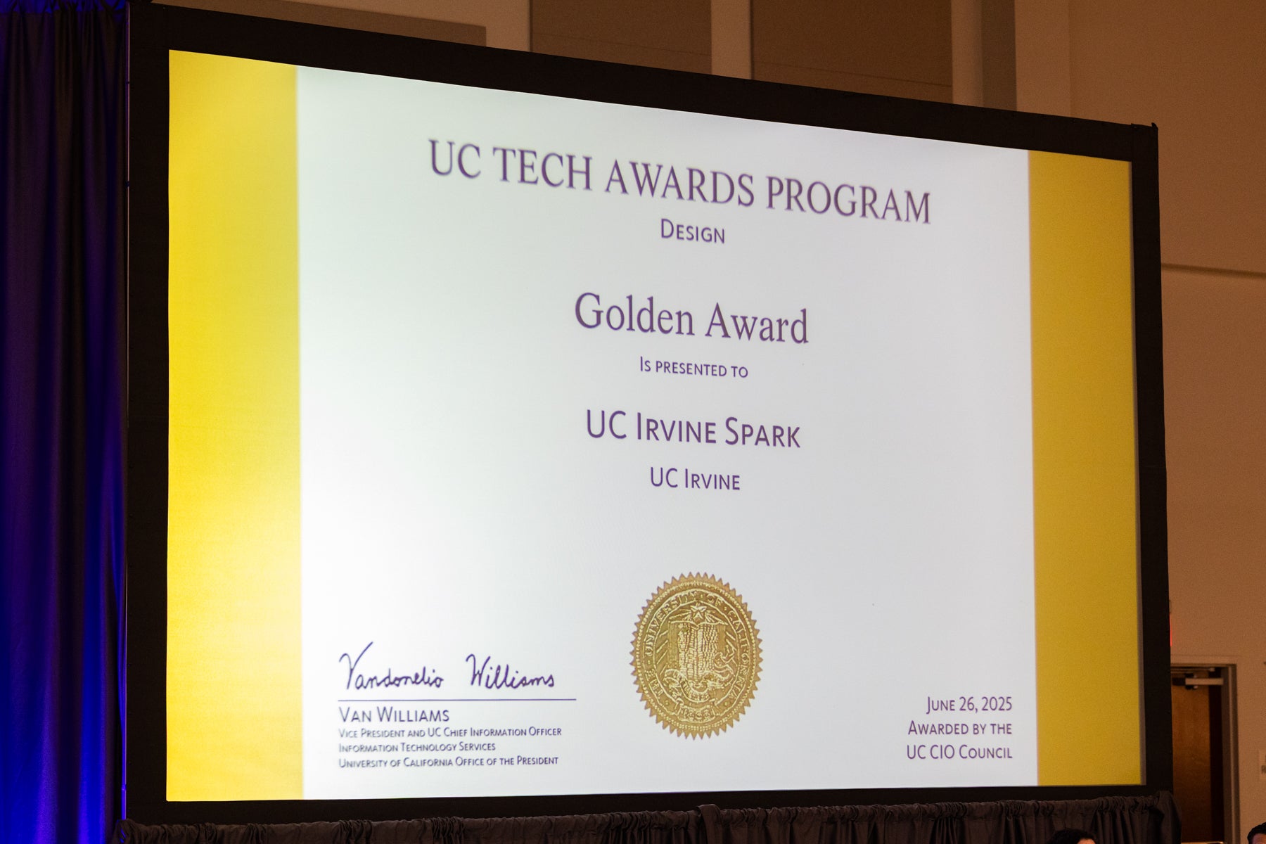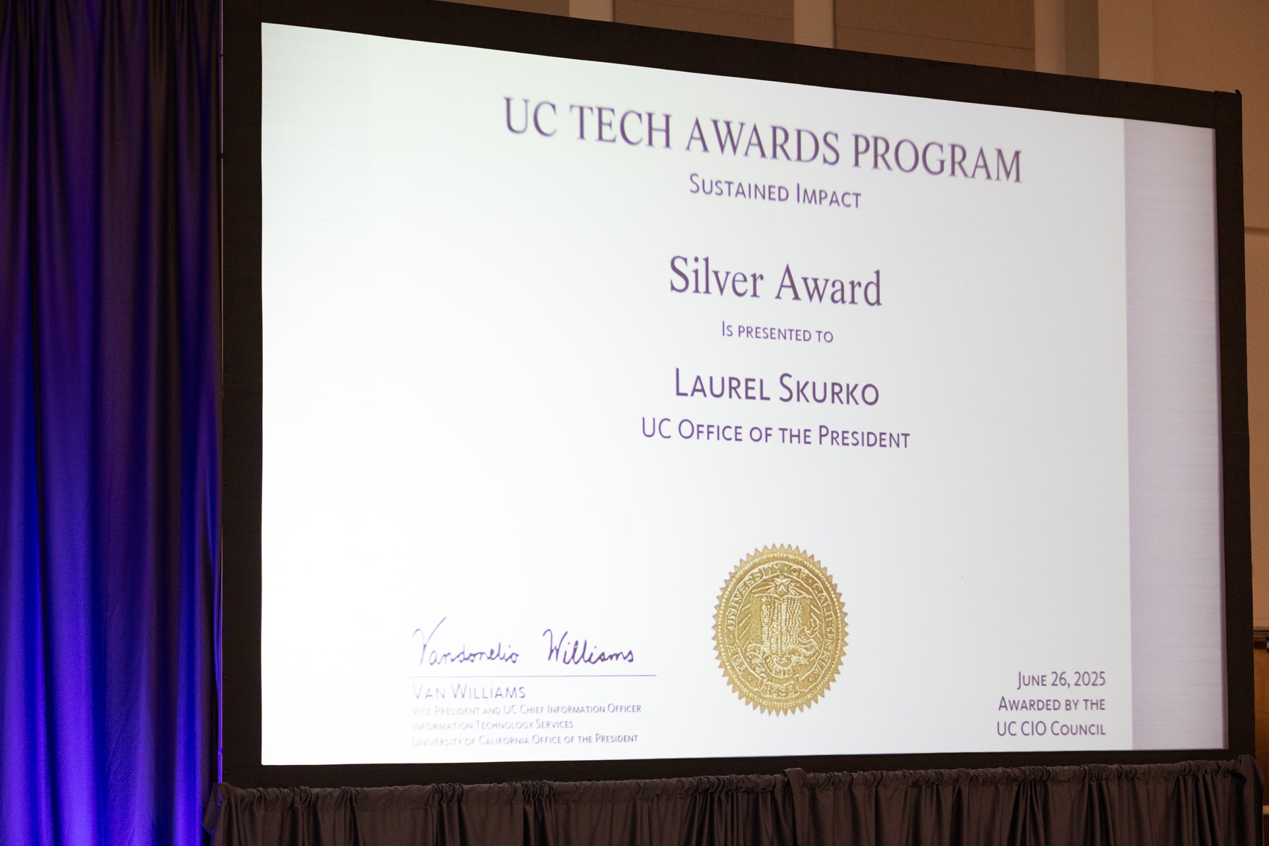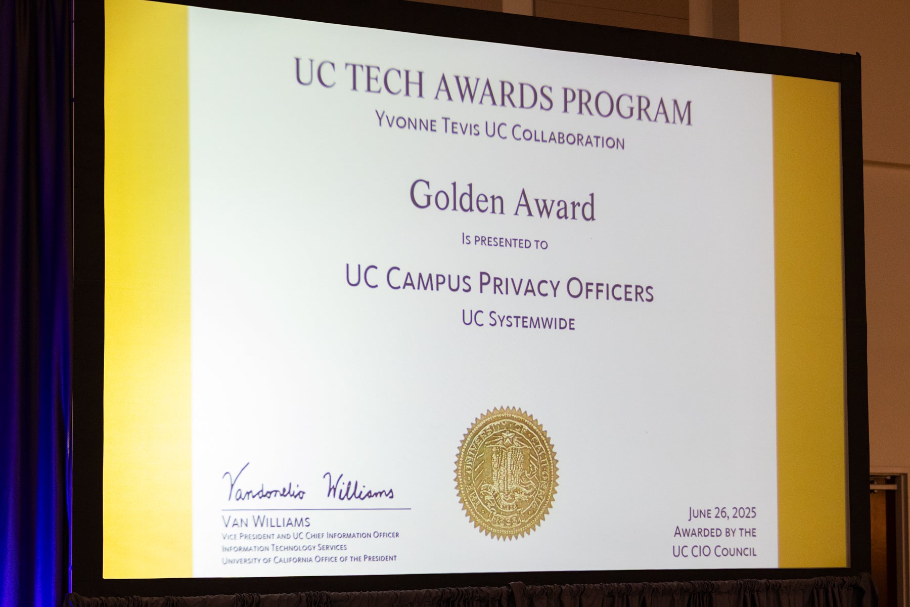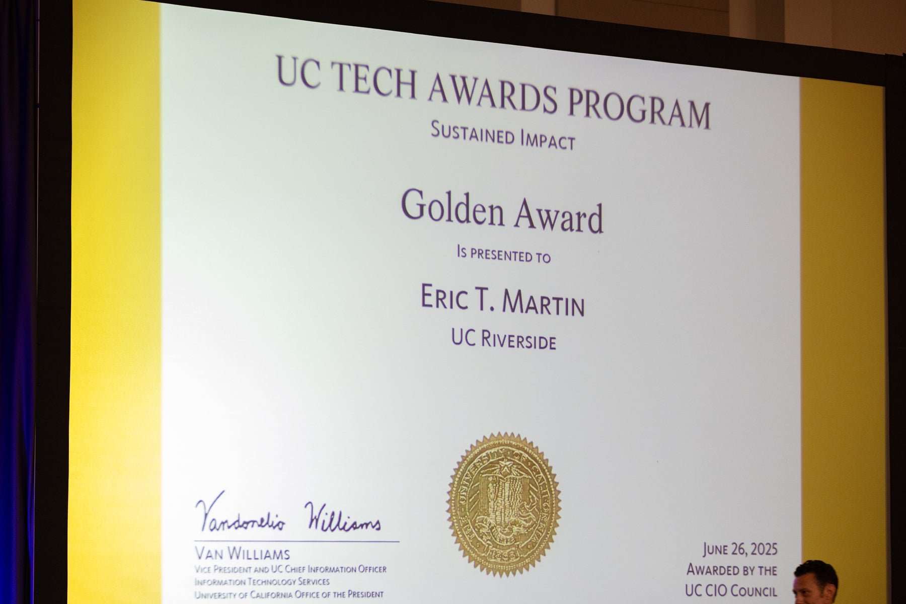 Enjoy the photo gallery of this year's UC Tech Awards, held on Thursday, June 26. We celebrated two individuals and 12 teams from across the UC system. It was a wonderful evening, filled with inspiration and a powerful reminder of the impact our IT community makes. Congratulations to all the winners! Learn more about this year’s awardees.