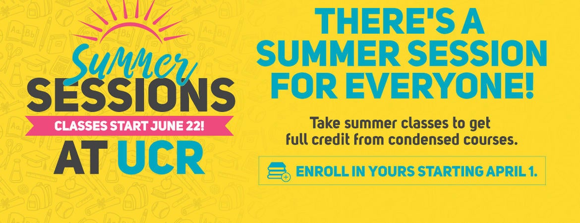 Take classes this summer to earn the units you need to graduate on time, or even early! In Summer Sessions you can complete prerequisites, major requirements or minor classes in five- and 10-week sessions that fit your schedule. Log in to R’Web today to enroll in summer classes. Fees are due the day you enroll.