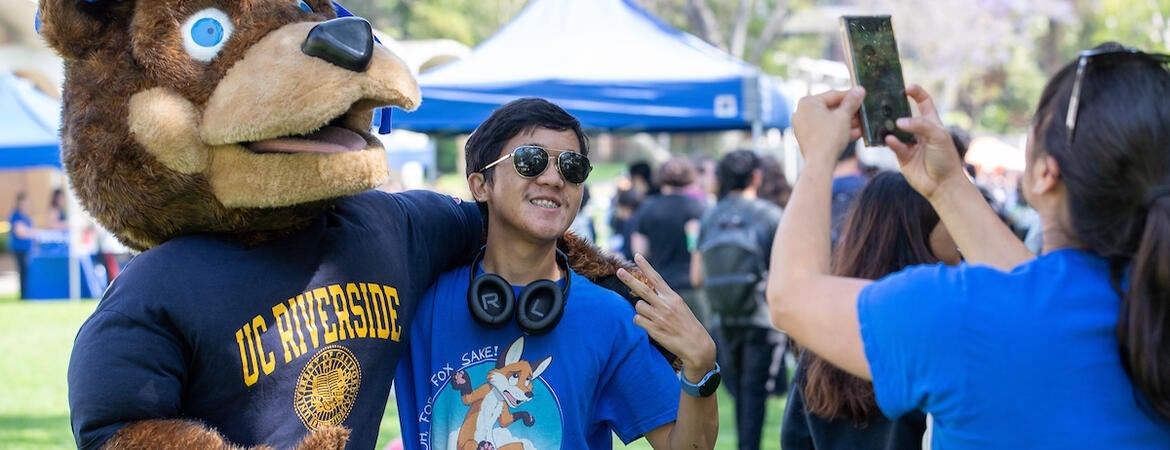 Many students took the opportunity to take photos with friends in front of campus landmarks such as the UCR sign and the bell tower.