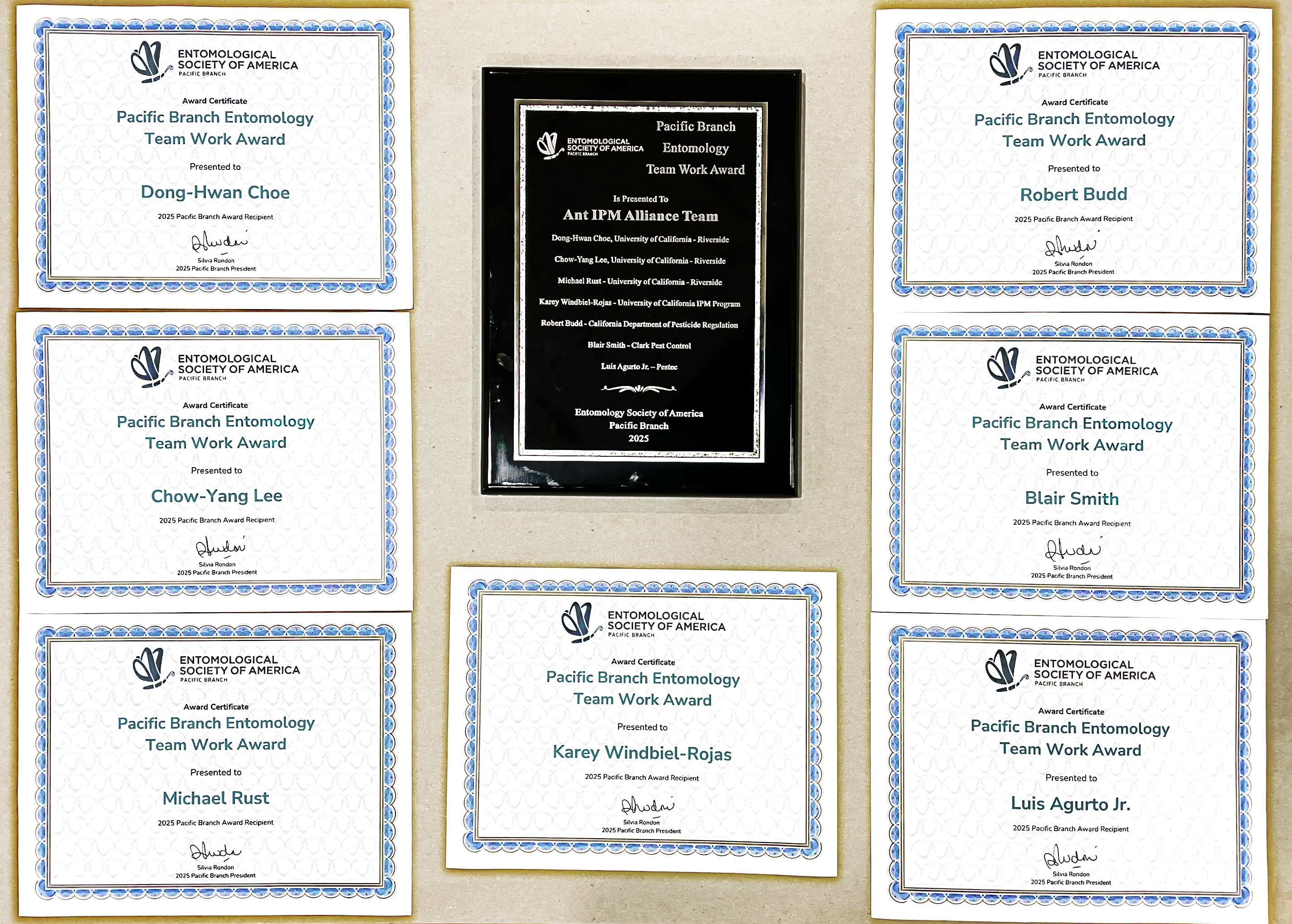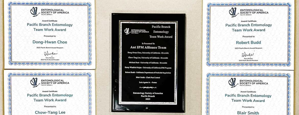 Our Ant IPM Alliance Project team was selected for the Entomology Team Work Award by Pacific Branch of Entomological Society of America in 2025. The project team included following members.