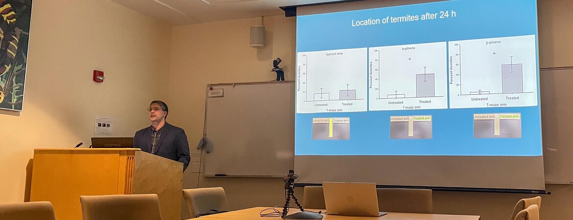Nicholas Poulos has successfully completed his PhD dissertation defense today (April 29, 2025). His dissertation title is "Attractants, Chitin Synthesis Inhibitors, and Bacterial Diversity of Fecal Pellets: Improving Localized Chemical Treatment and Detection of the Western Drywood Termite (Blattodea: Kalotermitidae)".
