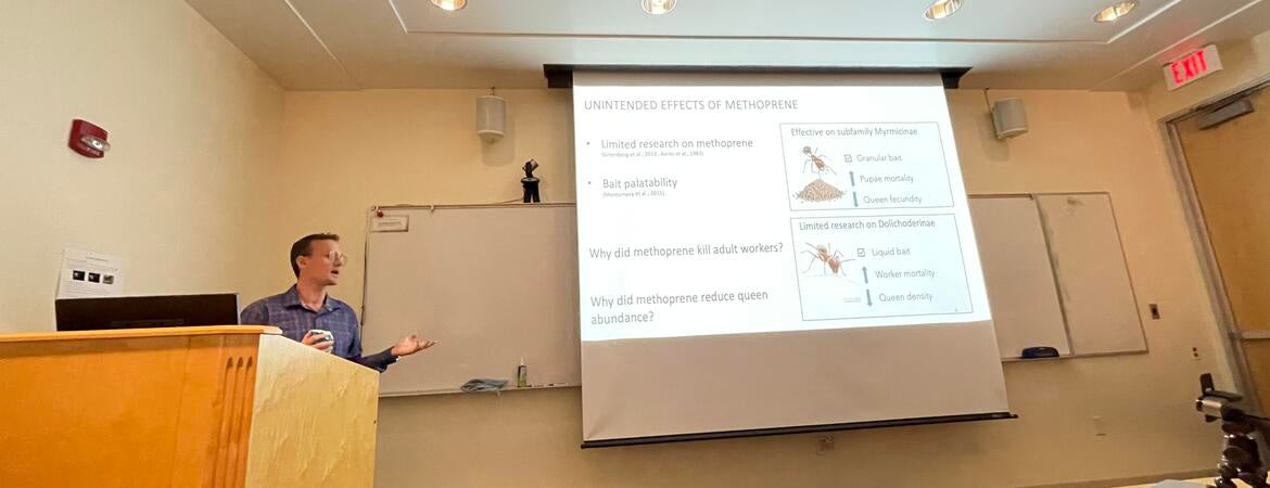 Tobias Moyneur has successfully completed his PhD dissertation defense today (September 5, 2025). His dissertation title is "Effects of Juvenile Hormone Analog on Lipid and Hydrocarbon Physiology Across Castes in the Argentine ant, Linepithema humile (Mayr)".