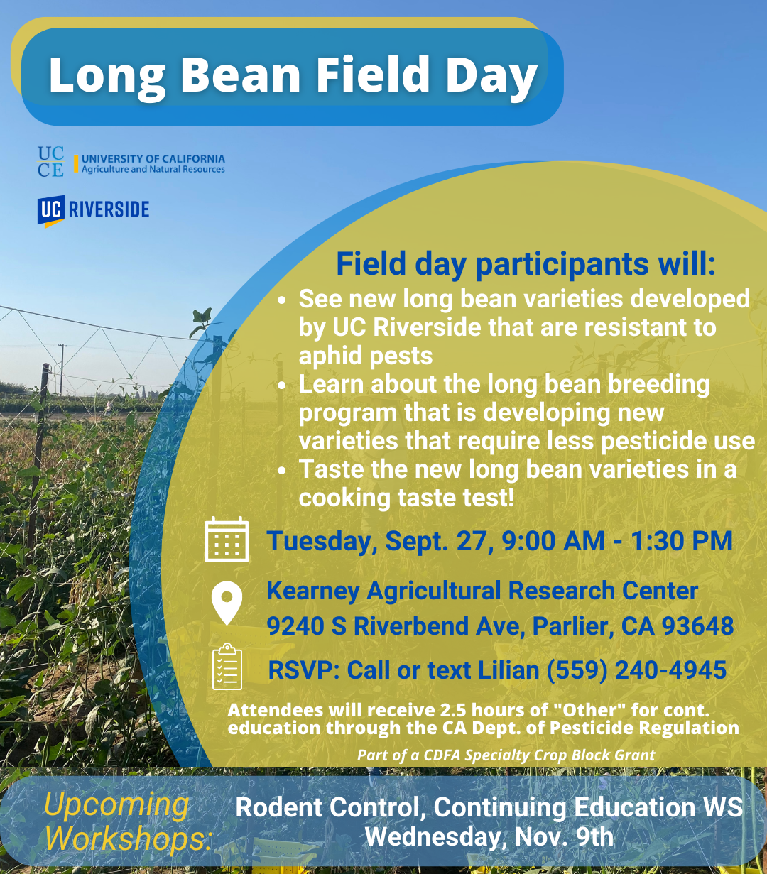 Kearney Agricultural Research & Extension Center 9240 S Riverbend Ave, Parlier, CA 93648 |