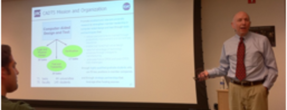 Dr. William H. Joyner, Jr. from Semiconductor Research Corporation visited EE department at UCR. Dr. Joyner is Director of Computer-Aided Design and Test at the Semiconductor Research Corporation. He presented a department colloquium talk titled Funding for University Research: What Industry Wants and How to Get Their Money. After the talk, he also visited the MSLAB at UCR and had discussions with the graduate students in the MSLAB.