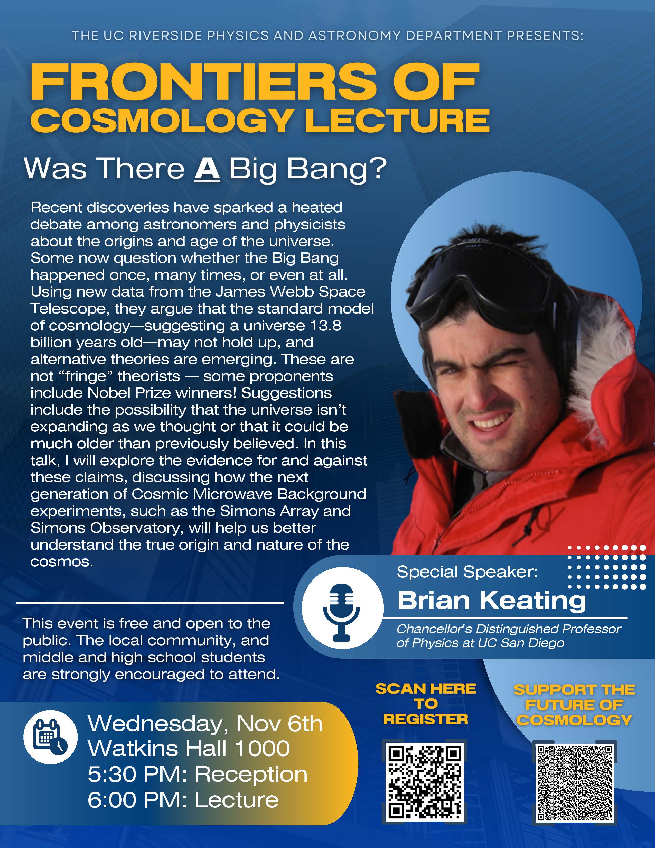 Using new data from the James Webb Space Telescope, they argue that the standard model of cosmology-suggesting a universe 13.8 billion years old-may not hold up, and alternative theories are emerging. These are not "fringe" theorists some proponents include Nobel Prize winners! Suggestions include the possibility that the universe isn't expanding as we thought or that it could be much older than previously believed. In this talk, I will explore the evidence for and against these claims, discussing how the next generation of Cosmic Microwave Background experiments, such as the Simons Array and Simons Observatory, will help us better understand the true origin and nature of the cosmos.