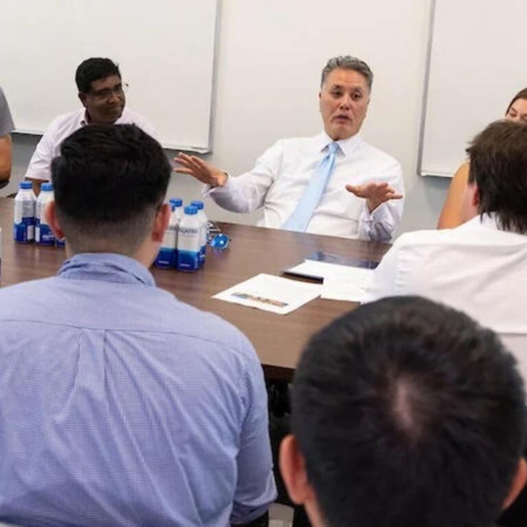 Rep. Mark Takano, D-Riverside, visited UC Riverside on August 6 to learn about the new Experimental Cosmology Center in the Department of Physics and Astronomy. The center, spearheaded by Nobel laureate Barry Barish, a distinguished professor of physics and astronomy, was launched earlier this year.