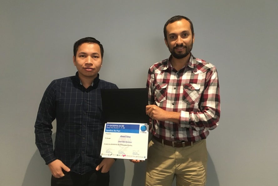 A paper by Prof. Ahmed Eldawy and PhD candidate Tin Vu was selected as the best paper at the ACM Spatial Gems Workshop 2019 in Chicago.