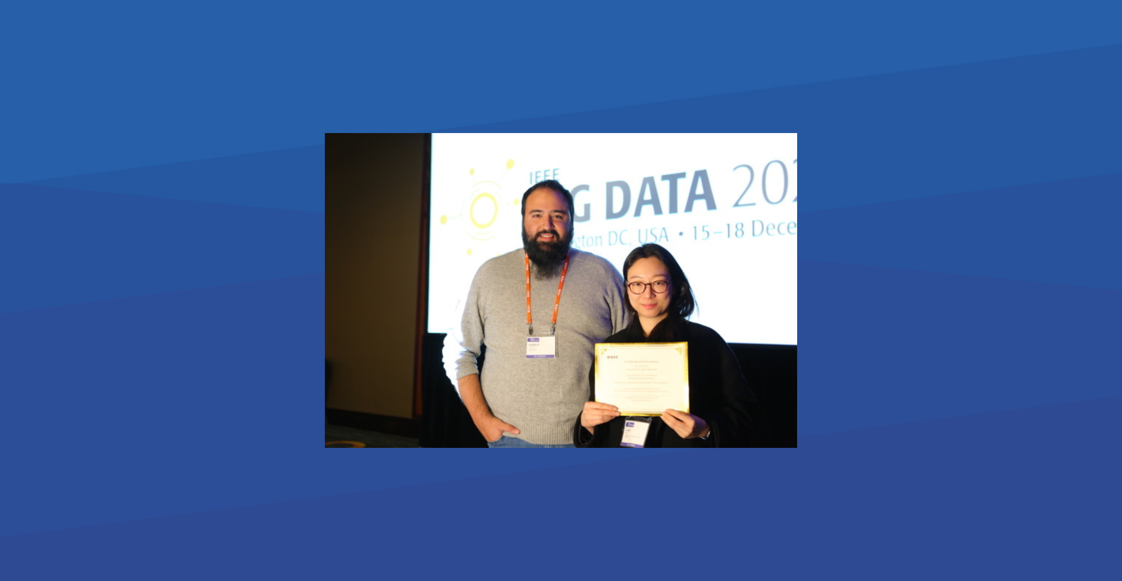 CSE student Dawon Ahn won the Best Short Presentation Award for the paper titled "Global and Local Structure Learning for Sparse Tensor Completion". The paper was presented as part of the Doctoral Forum at the IEEE BigData 2024 conference that took place in Washington DC during December 15-18 2024. Dawon's paper introduces a new and improved way for conducting tensor completion, a machine learning technique that estimates missing or unobserved data with broad applications ranging from recommender systems to scientific discovery.