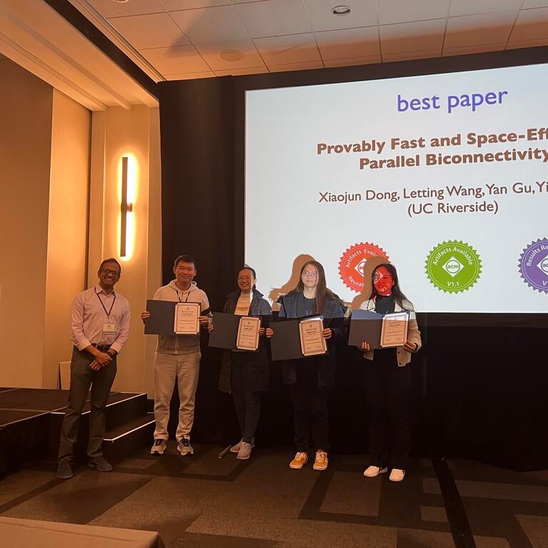 UCR CS students Xiaojun Dong and Letong Wang, and faculty members Yan Gu and Yihan Sun, won the best paper award at ACM SIGPLAN Principles and Practice of Parallel Programming (PPoPP) 2023, one of the top conferences on parallel computing and programming.